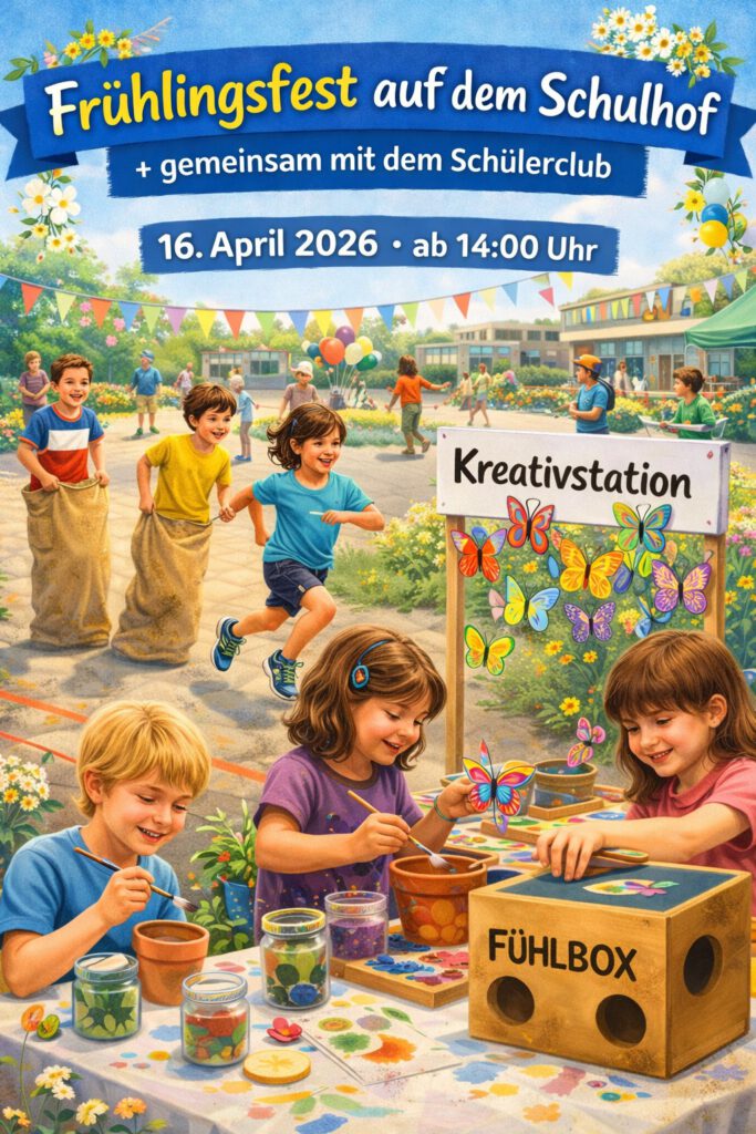 Der Frühling ist da – und mit ihm die Lust auf Bewegung, Begegnung und frische Ideen! Das möchten wir gemeinsam feiern und laden euch herzlich zu unserem Frühlingsfest auf dem Schulhof ein. Freut euch auf einen bunten Nachmittag voller Spiel, Kreativität und guter Stimmung.