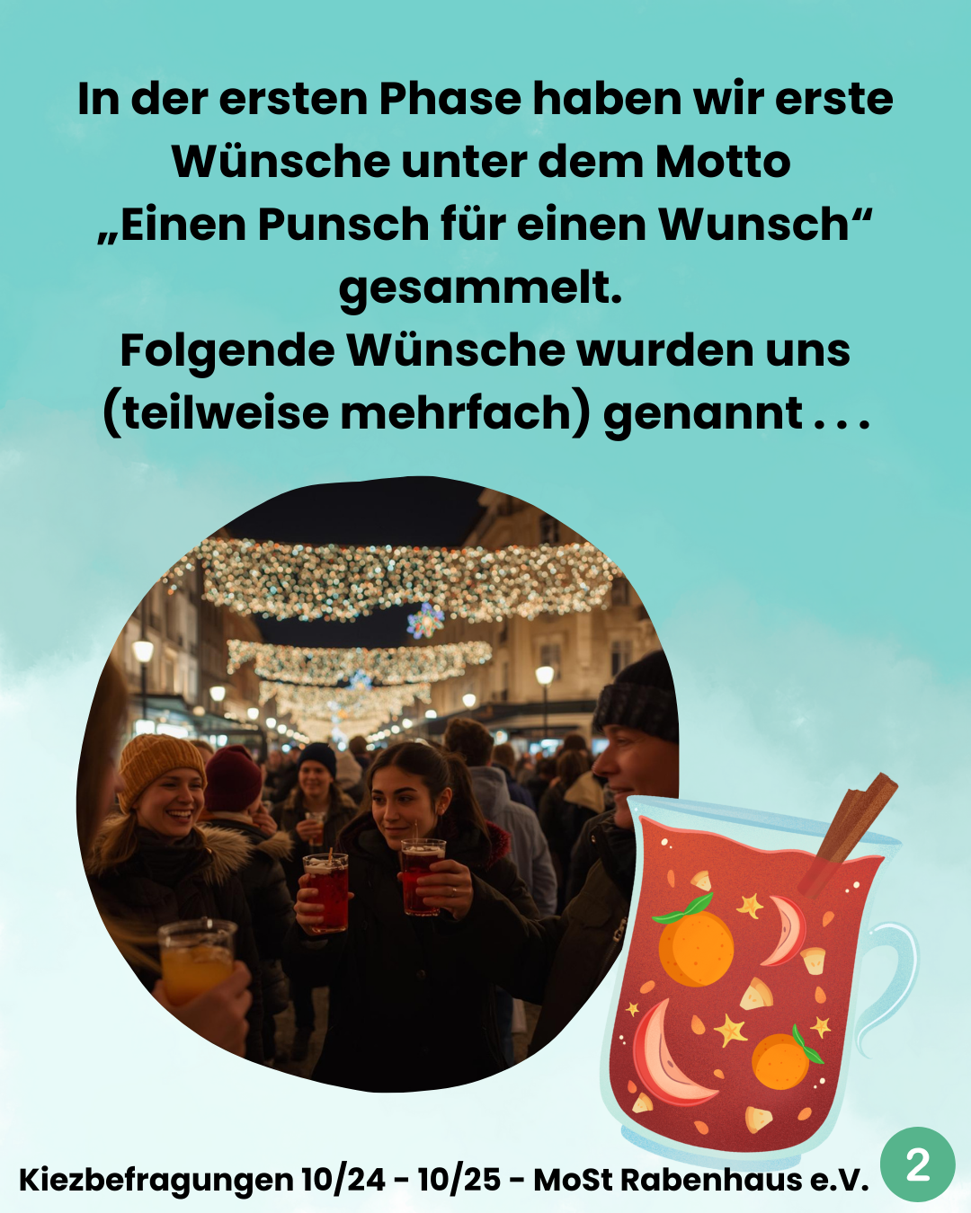 Von Oktober 2024 bis März 2025 forderten wir bei "Ein Punsch für einen Wunsch" dazu auf uns Wünsche für den Kiez zu verraten.