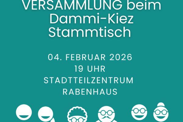 Die Mobile Stadtteilarbeit des Rabenhaus e.V. und die Dammi-Kiez Nachbarschaftinitiative laden ein zur Nachbarschaftsversammlung: Das Jahr 2026 hat begonnen und wir wollen gemeinsam mit Euch ins Tun kommen – vom…